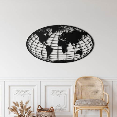 Oval Meridyen Dünya Haritası Metal Duvar Dekoru