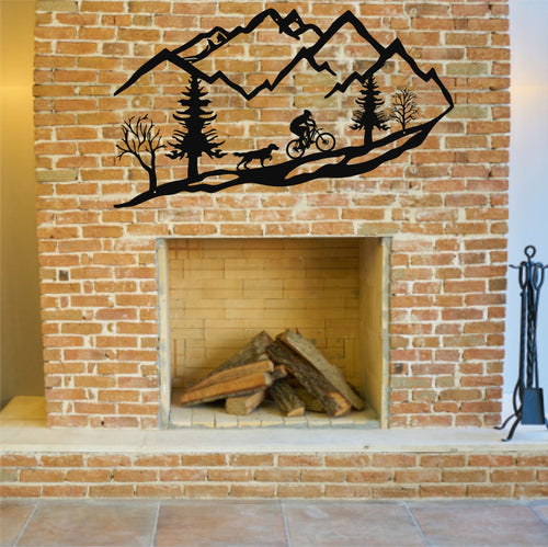 Bisikletli ile Köpek Metal Duvar Dekoru