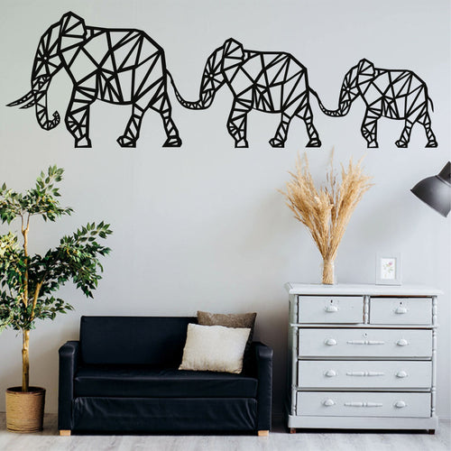 Geometrik Fil Ailesi Metal Duvar Dekoru