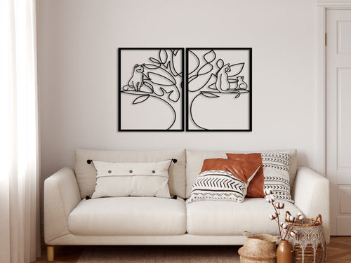 Ağaç At 4 Panel Metal Duvar Dekoru